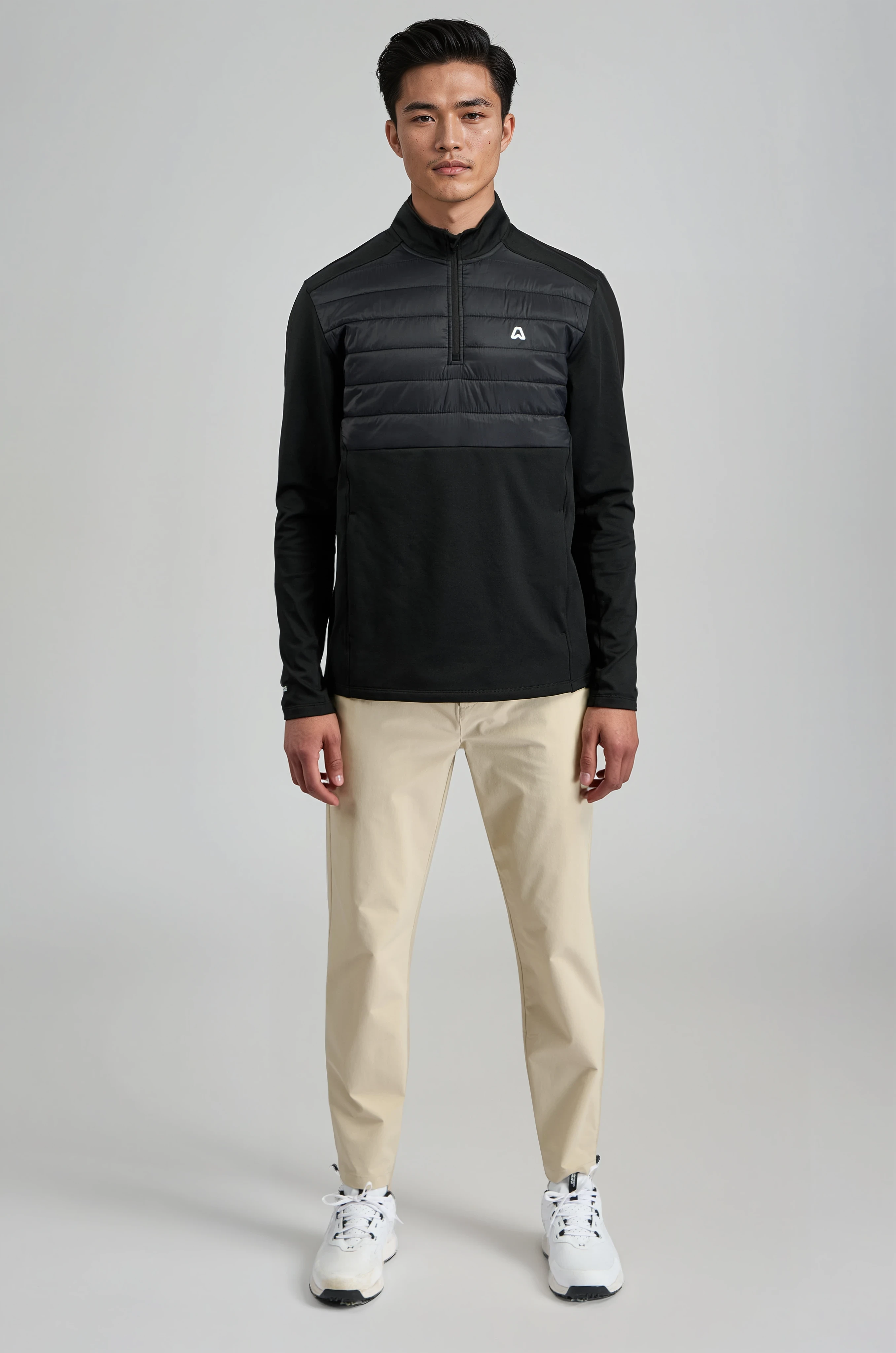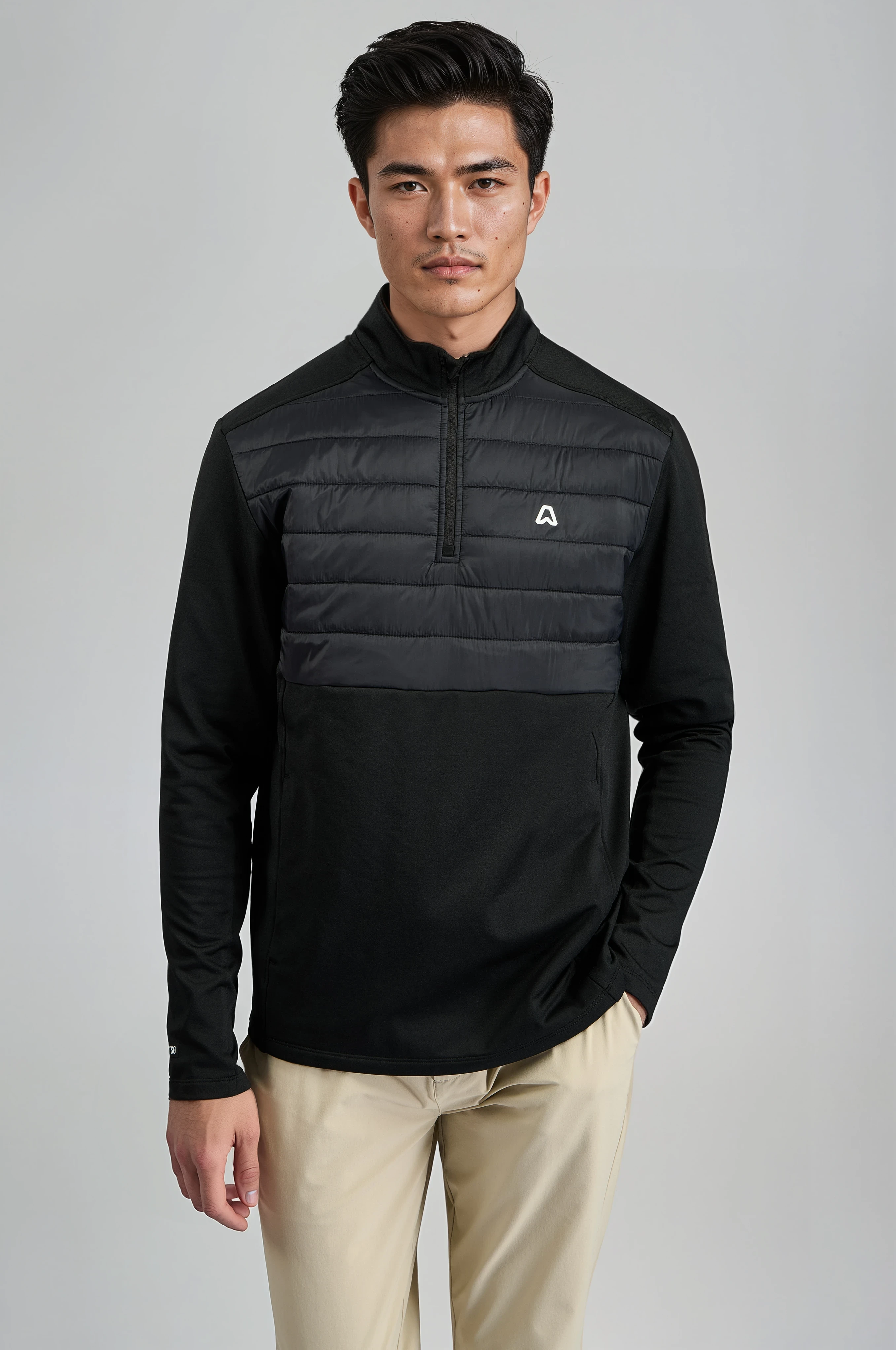 The ATSG Hybrid Overhead Golf Jacket is the perfect layering piece for added warmth and versatility. Made from a blend of polyester and elastane with quilted nylon upper panels, this long sleeve half zip jacket offers both comfort and style. The brushed inner fabric provides excellent thermal properties, keeping you warm during cooler months. The jacket also features contour panelling for a sleek fit and two lower pockets for functionality. Finished with branded trims and subtle chest and centre back branding, it’s designed to stand out while keeping you cosy.