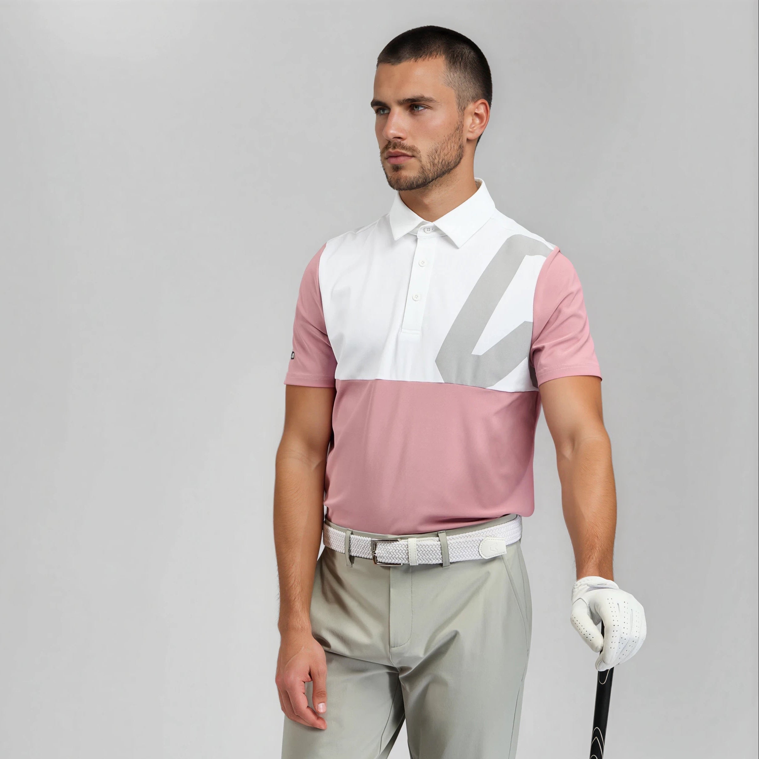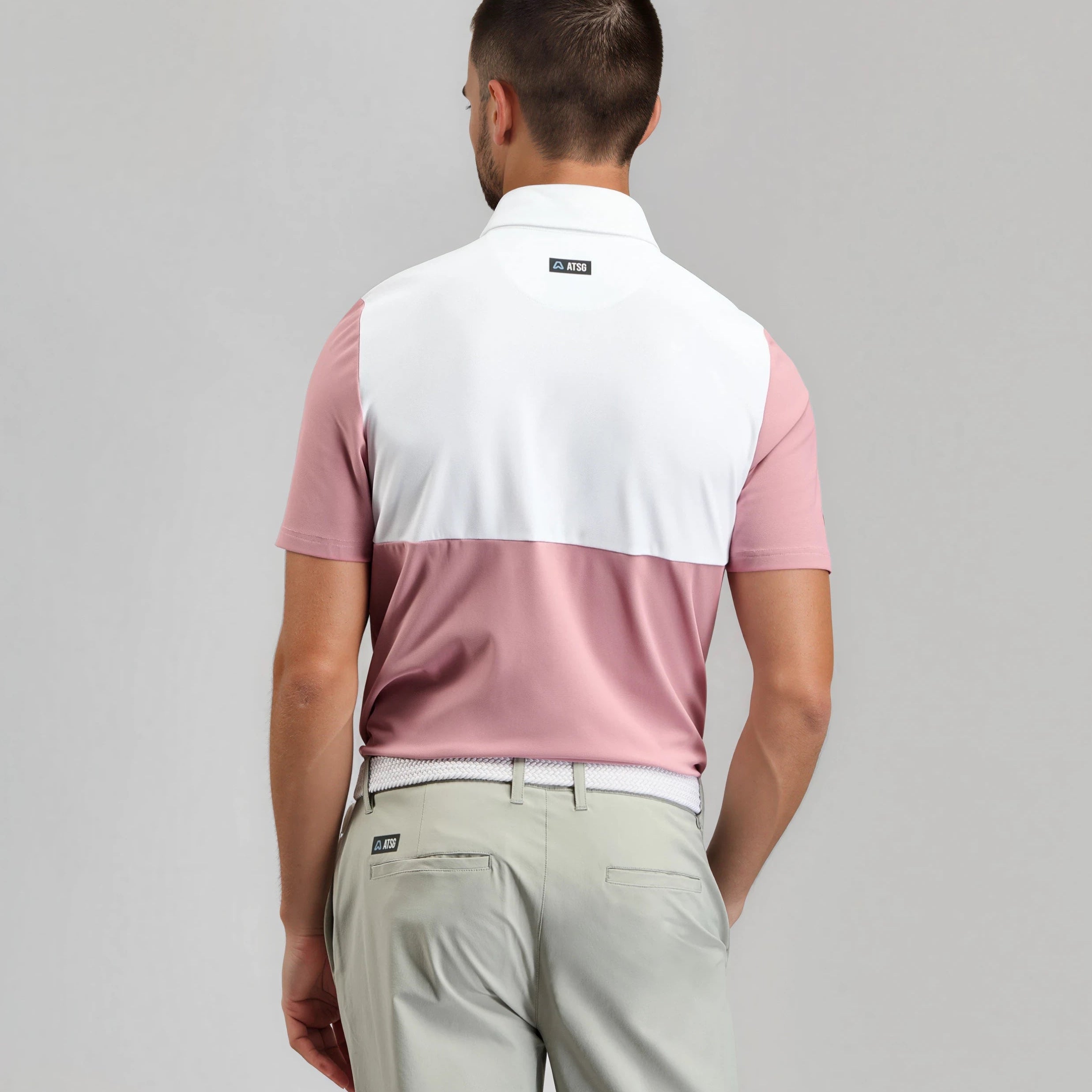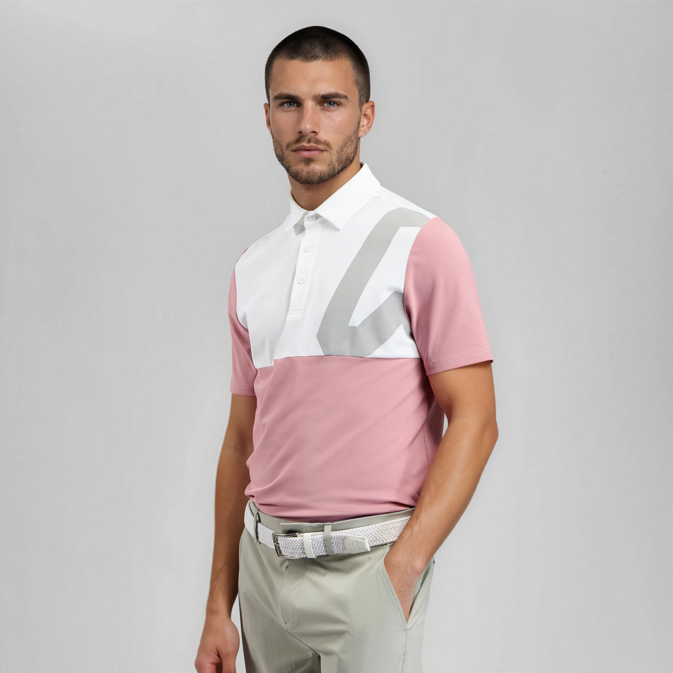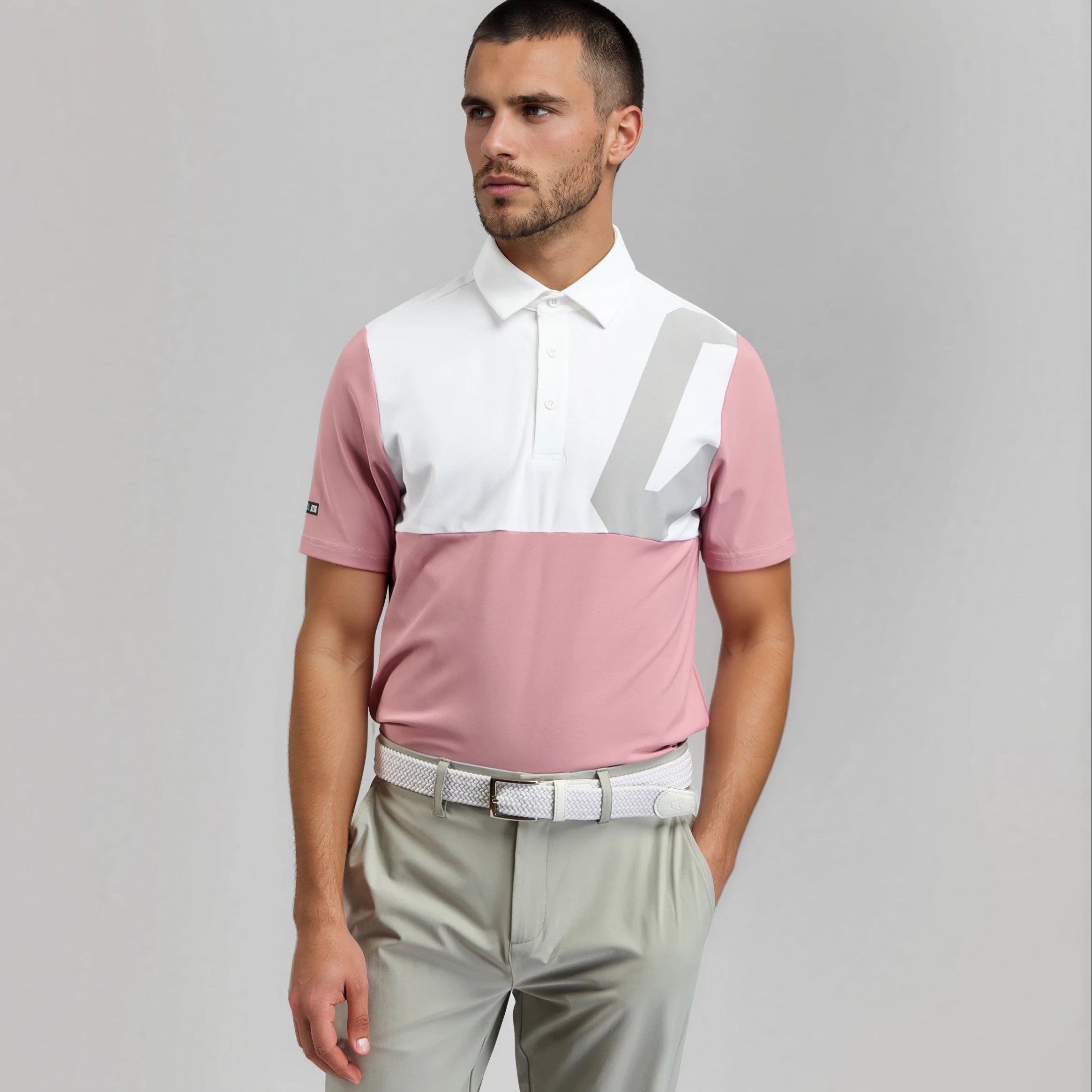 Magnet Colour Block Golf Polo Shirt - Dusky Rose / Chalk White