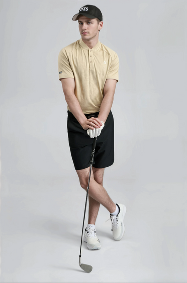 Orbit Texture Grandad Golf Polo Shirt - Bunker Sand