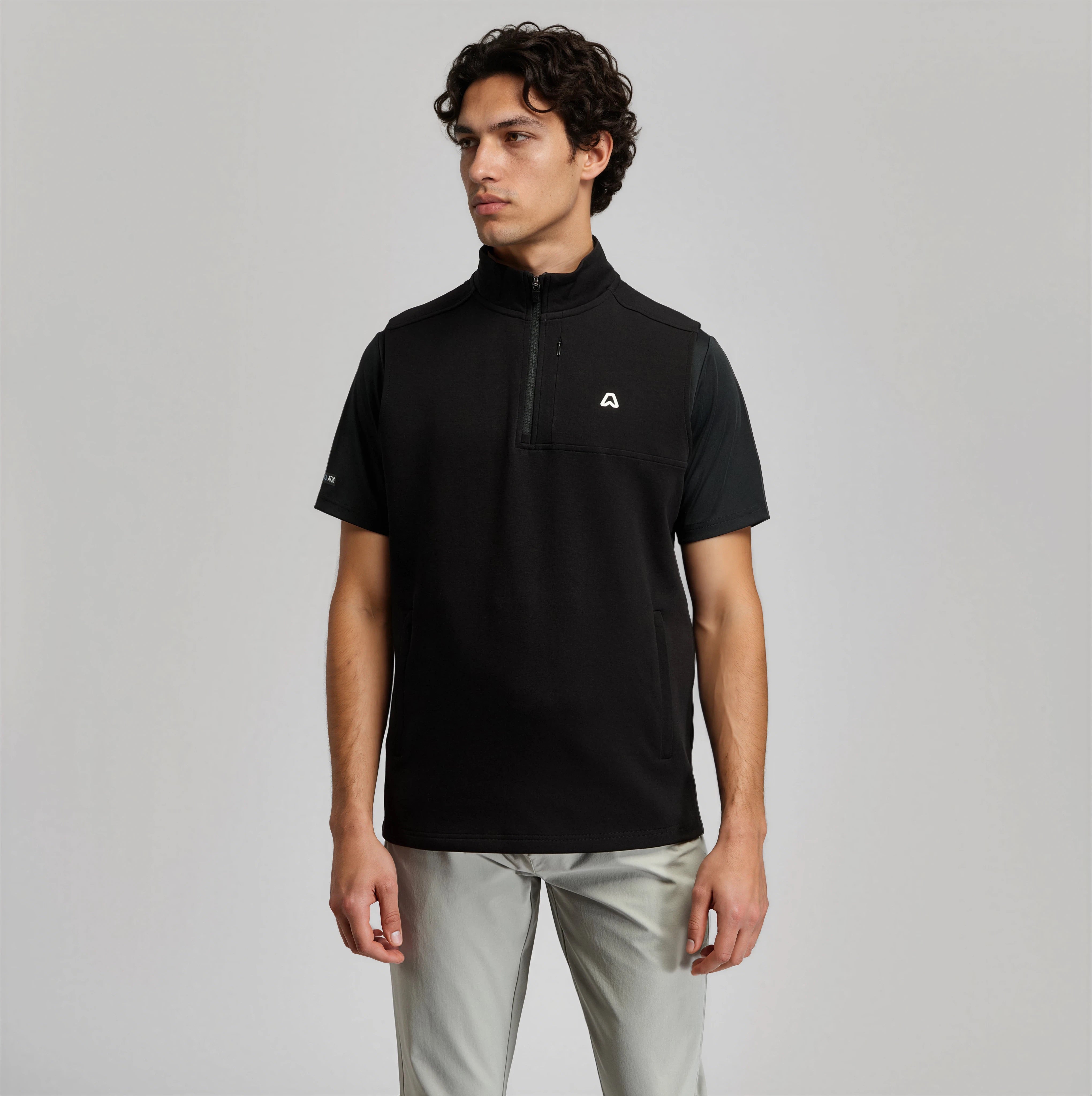 Sleeveless Cotton Blend 1/4 Zip Golf Vest - Putter Black