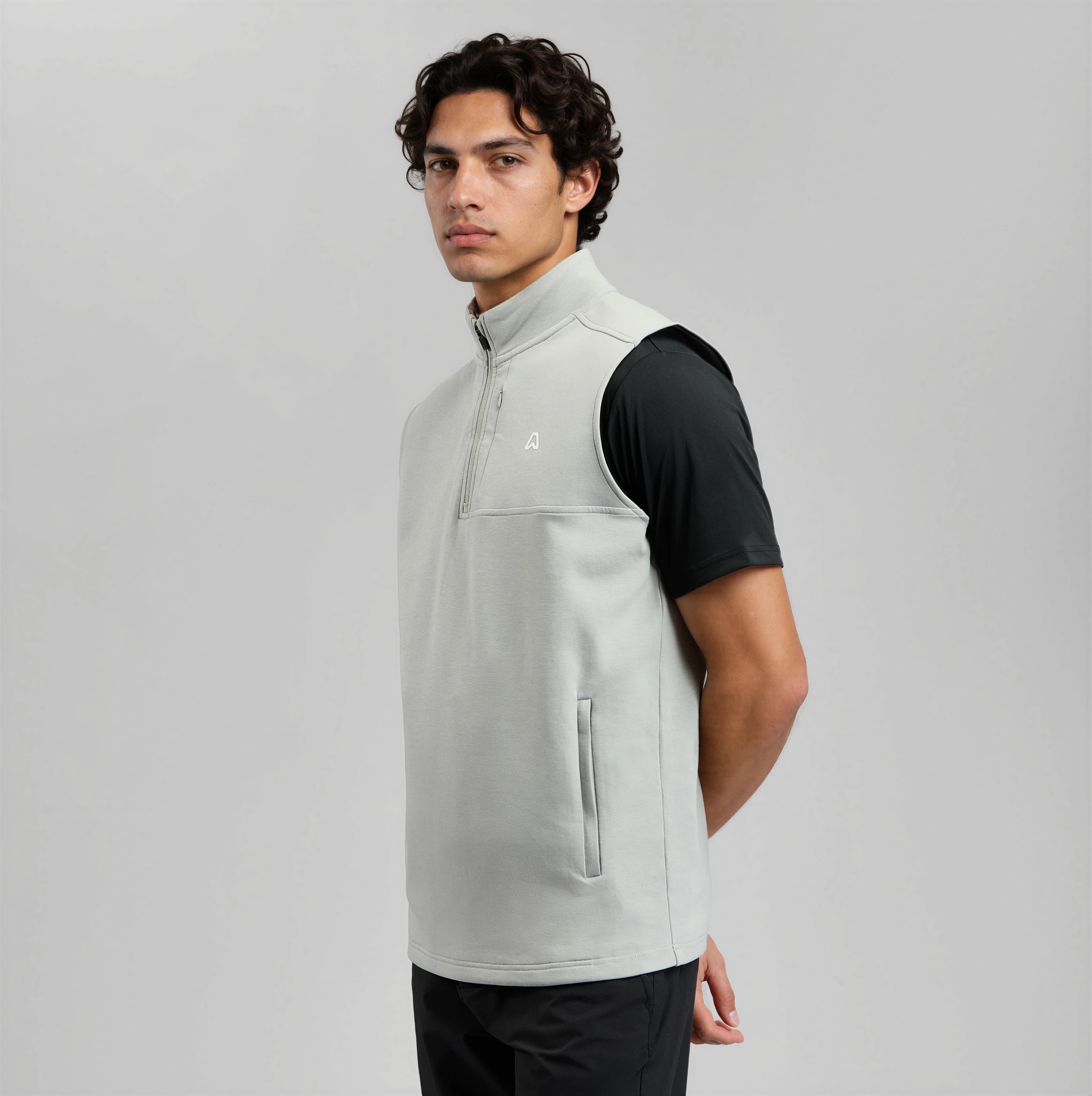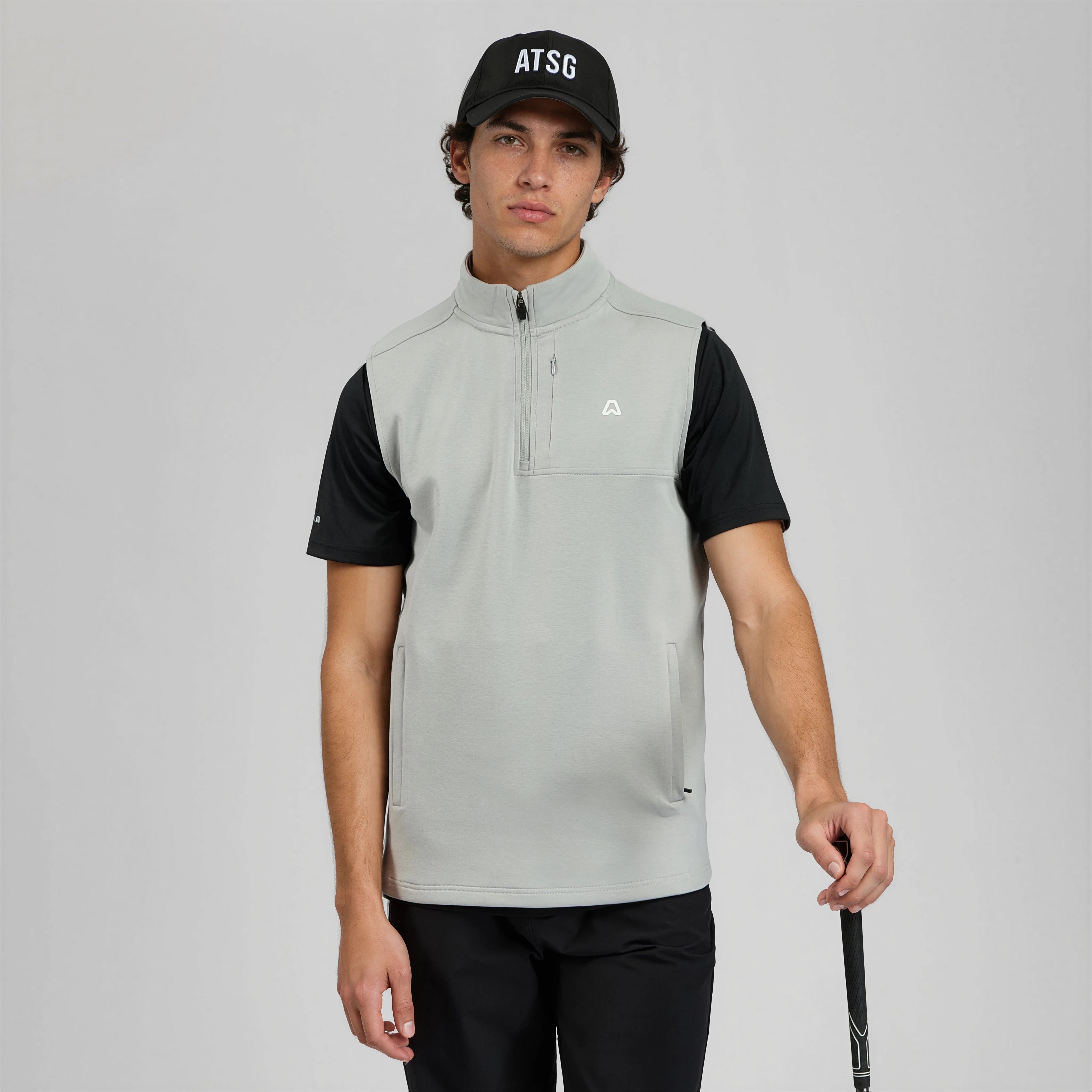 Sleeveless Cotton Blend 1/4 Zip Golf Vest - Ice Grey
